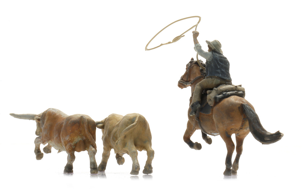 Cowboy lassoing Longhorns