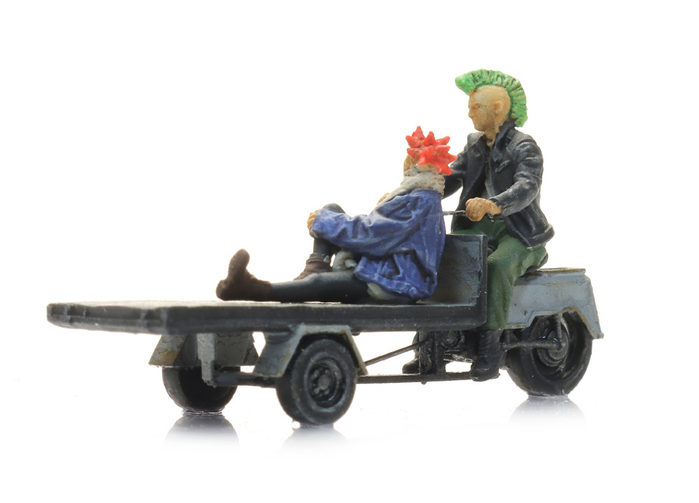 Three-wheeled moped with punks