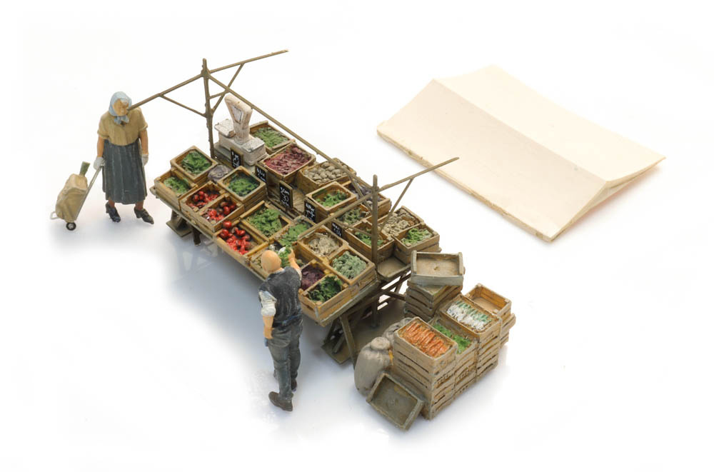 Marktkraam groenten met figuren